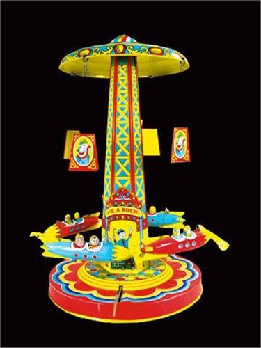 J. Chein tin wind-up (Ride a Rocket) airplane ride, 19 inches tall, Excellent Cond.