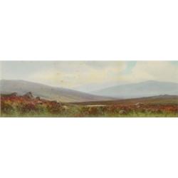 J Coad- Pair of gilt framed watercolour Moorland landscapes, 17cms x 53cms each