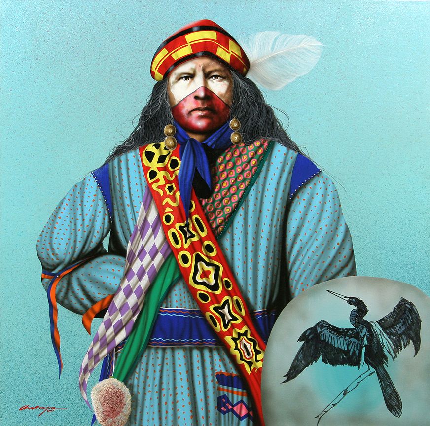 J. D. Challenger (b. 1951). The Unconquered. 40" x 40" acrylic on canvas. Signed lower left: Challenger © 97. (est. $7,000-9,000). Included with this lot is a copy of the collector's limited edition book Ghost Dancing, #47/80, in which The Unconquered is published. Signed by the artist.. CONDITION REPORTS: www.auctioninsantafe.com/docs/cr2012.pdf