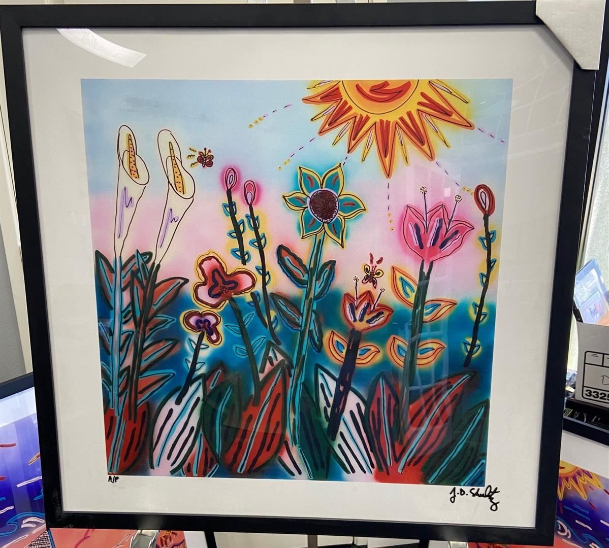 Celebrated artist J.D. Shultz's 33X34" Field of Flowers. Framed giclee on plexi, Signed, numbered AP.