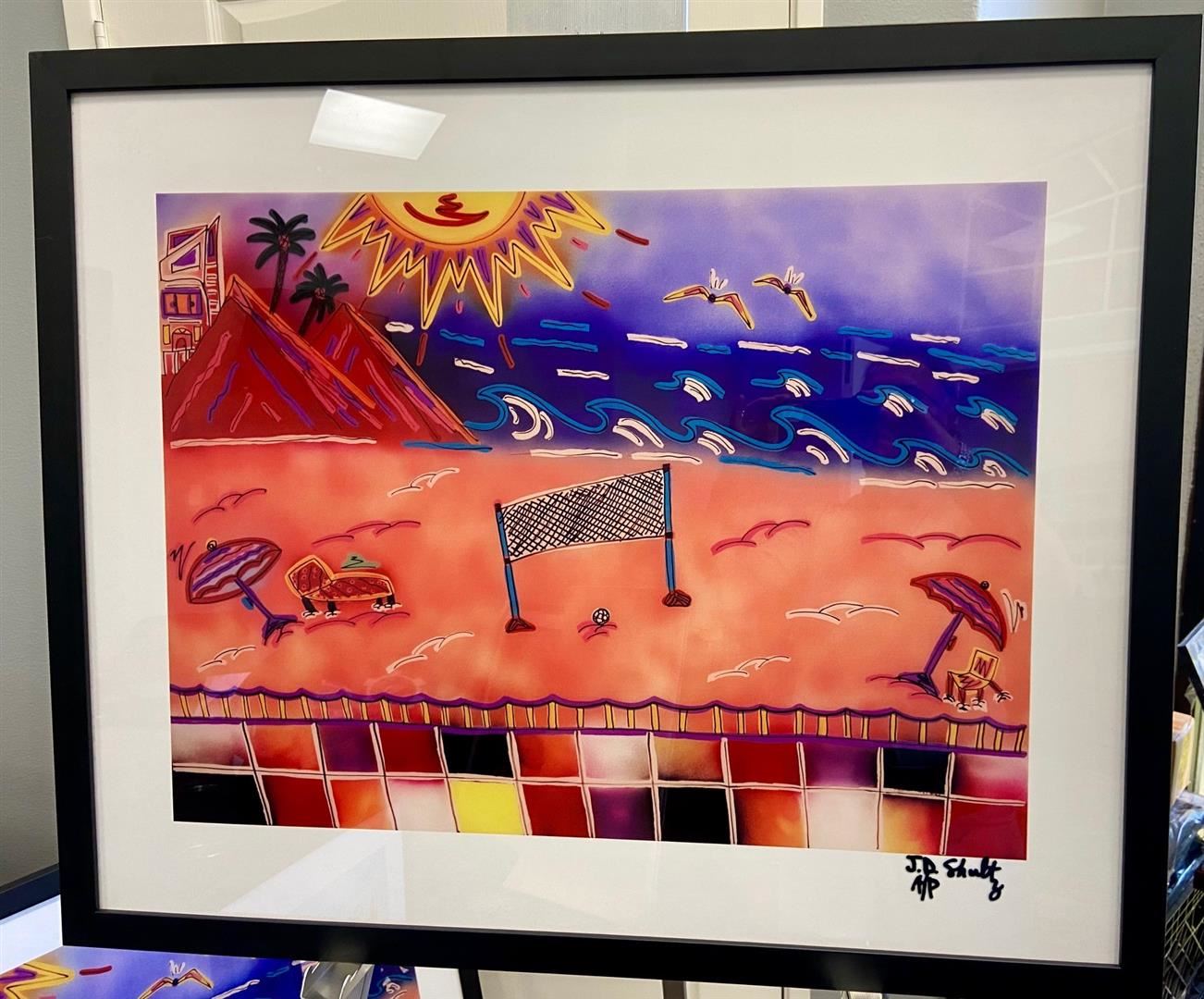 Celebrated Artist J.D. Shultz's 24x44" Beach Scene. Framed giclee on plexi, signed,numbered AP.