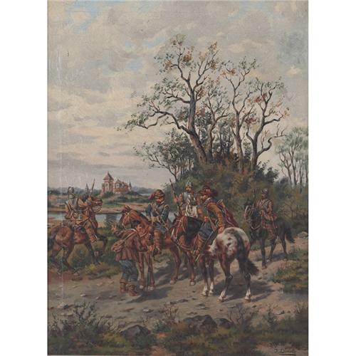 J.Demski (European,19th century), The Lord of the Manor, c.1880; oil/canvas,25in. x 19in., signed;title on label verso.Demski was well known for his depictions of Cossacks.