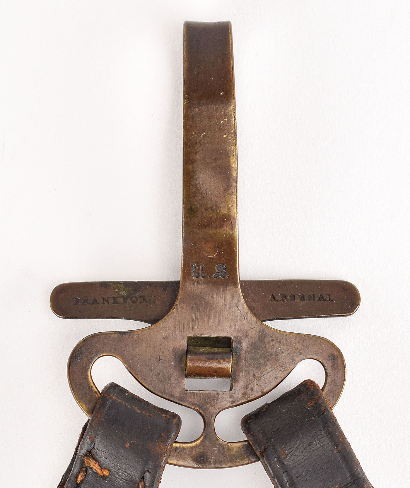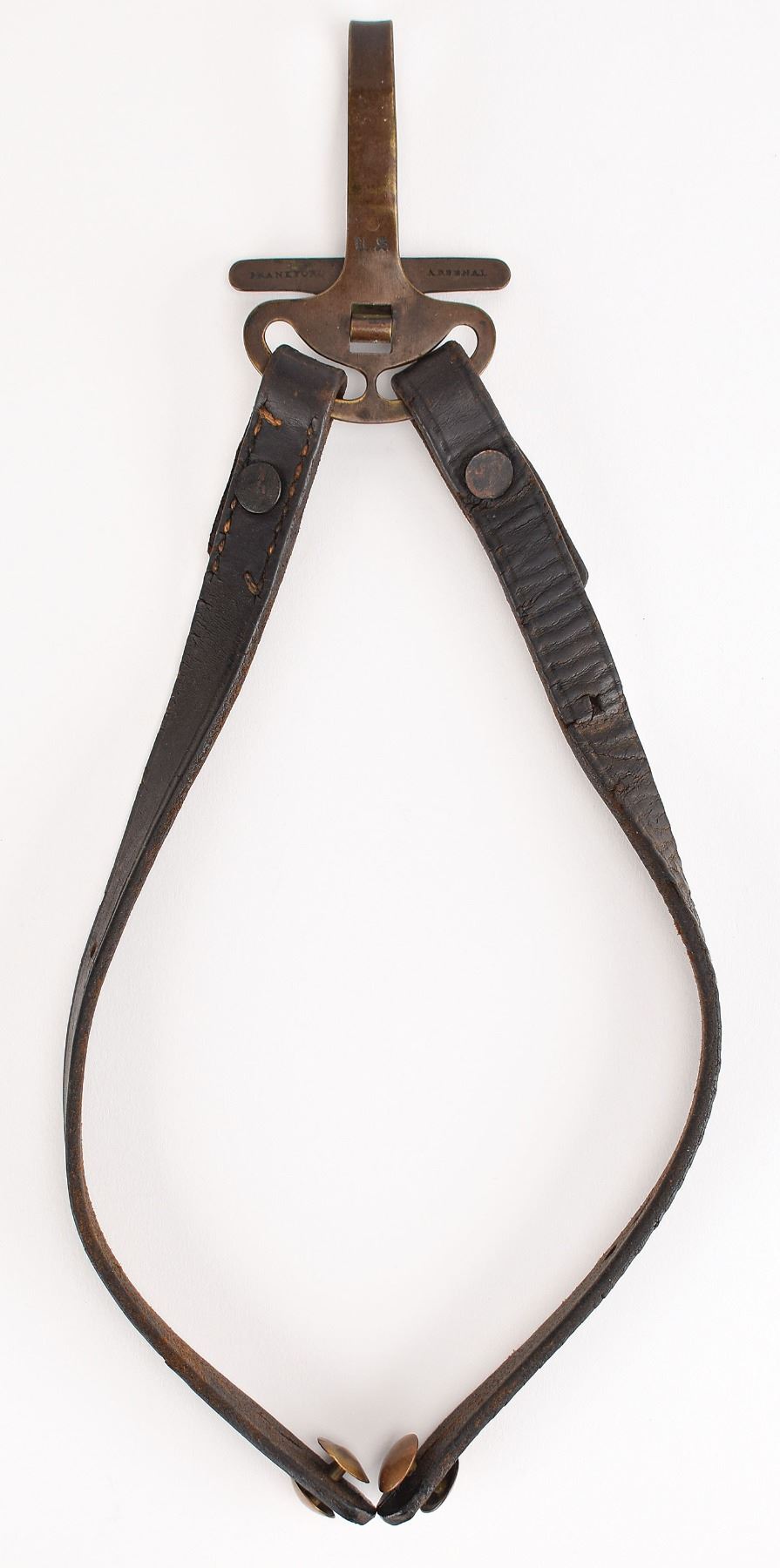Included with the letter is an original vintage leather sword hanger retaining all original brass hardware. Straps are folded and riveted with snap hooks at ends, with both measuring 12.5? in length.; the leather is supple and bears some light crazing. The brass hanger, 2.75? x 3.75?, is marked with an Old English “U.S.” and the hinged clip is stamped “Frankford Arsenal." This style hanger was patented by J. E. B. Stuart in 1859. He later sold the rights to the U.S. government and it became a standard cavalry issue throughout the Civil and Indian Wars. In use up until 1900, the sword hanger enabled the trooper to more easily and swiftly disconnect the sword from the belt when it was not required. In overall fine condition.