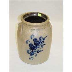 J & E NORTON 2 GAL. W/ COBALT FLORAL SPRAY, BENNINGTON VT - TOP RIM NICK W/ NICK ON HANDL