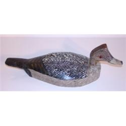 J.E. Tyler pintail hen decoy. Marked on bottom.