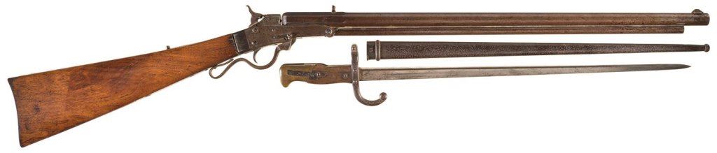 J.F. DUNN Marked Mass. Arms Co. Ballard Model 1873 Sporting Rifle with French Bayonet and Scabbard