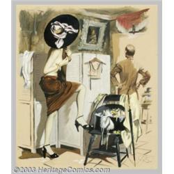 J. Frederick Smith - Original Illustration (1943).Gouache on board, image size approximately 13.5 x 11.5. Initialed lower right.Noted on the verso in the artist's hand: "Remembering Dave Smart" (the publisher of Esquire magazine), "J. Frederick Smith, 1943. This illustration was what gave me an Esquire contract." keywords: illustrator, painting, glamour, fashion, pin-up Important notice: Heritage usually auctions material at the rate of 200-250 lots per hour. On some occasions eBay Live bid software or the Internet may not be able to keep up with the pace of the auction. We recommend placing a realistic absentee bid now as insurance to avoid disappointment. Occasionally the auctioneer may eliminate or reject an eBay Live bid, and the auctioneer may also reopen a lot after the close of the eBay live bidding (usually because we missed an audience bid), and may reject your bid even if it shows you as the winning bidder. By bidding via eBay Live, you agree that Heritage may award the lot to another bidder at its sole discretion under the circumstances described above or any other reasonable circumstances. Also please note that all Heritage lots purchased through eBay Live carry a 20% Buyer's Premium. Please make sure you read the Terms and Conditions before you bid.