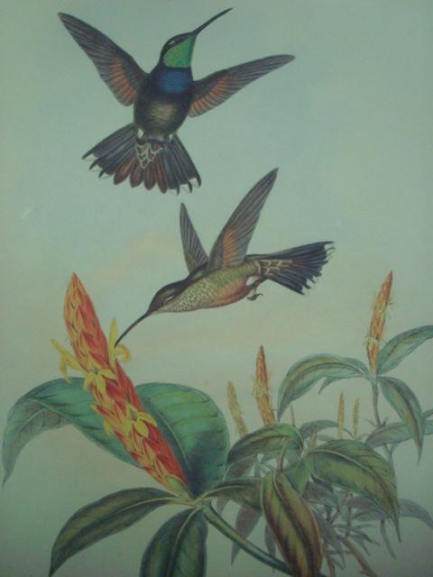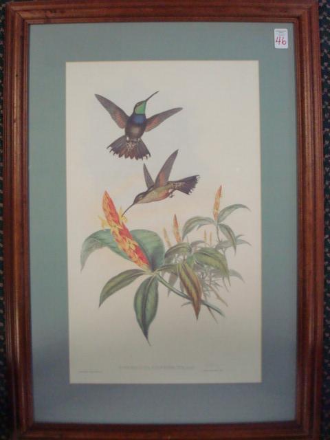 J GOULD Violet Crested Hummingbird Handcolored Print: Sternoclyta Cyaneipectus by Gould and Richter is 14"X 23 1/2" Image Framed to 24" X 33 1/2". Famous English Watercolor Artist and Taxidermist. (200-300)
