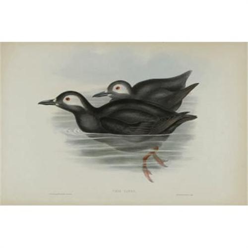 <B>J. Gould Elephant Folio Print: <I>Uria Carbo.</B></I></B></I> This print features the Kurile Guillemot, native to the rocky coast of the Great Peninsula of Kamtschatka, the Okotsk, and the Behring Seas. It is a large and robust bird, but only lives in the remote areas mentioned. The page of text, which accompanies this print, explains other facts and observations about the bird in question. The print depicts two of the species swimming in a body of water. <BR><BR><b>Shipping:</b> Flat Material, Small (<a target="_blank" href="http://www.heritageauctions.com/common/shipping.php">view shipping information</a>)