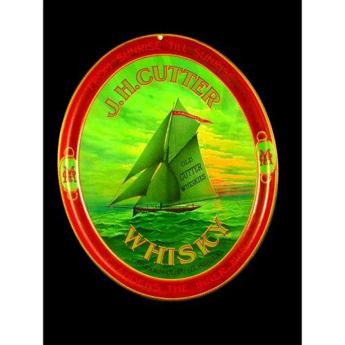 J. H. Cutter Whisky Tin Serving Tray, C. P. Moorman and Co., Louisville, KY, nail hole at 12:00 otherwise excellent condition, 13 1/2 x 16 1/2 inches.