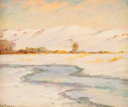 J.H. Sharp (1859-1953). 8" x 10". Oil on Board. "2A Ranch-Montana". Signed LL. (est $30,000-40,000)