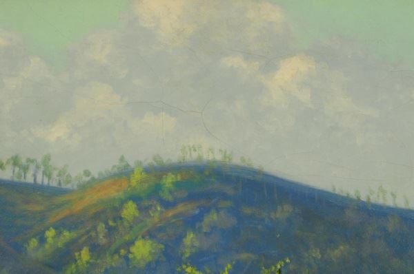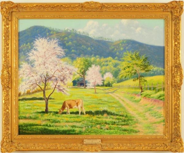 Jacques Hans Gallrein (1888-1978) "Spring Morning". Nicely framed, oil on canvas, dated 1961. Beautiful springtime scene by one of Oklahoma's best artists. 24" tall x 36" wide.