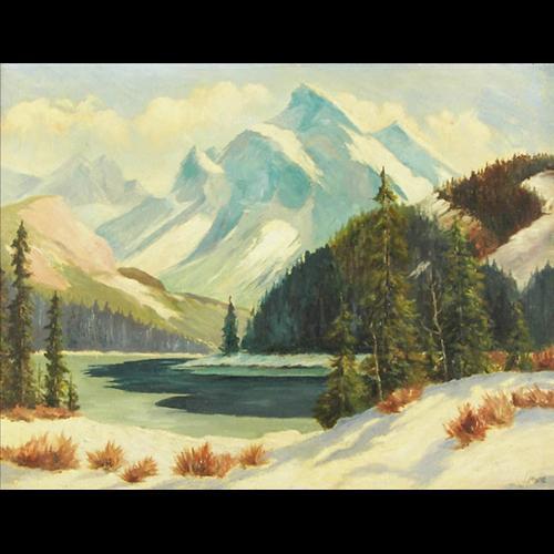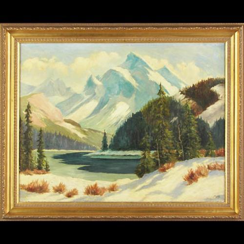 J. Hope, Oil on Canvas, Mountain Lake, 22" x 28", signed lower right