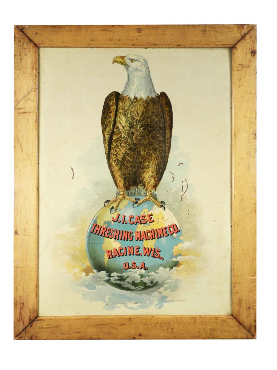 J.I. Case Embossed Tin Sign. Threshing Machine Co. Racine, Wis. A few minor scratches otherwise very good condition, in original frame. 24 X 32 inches overall.