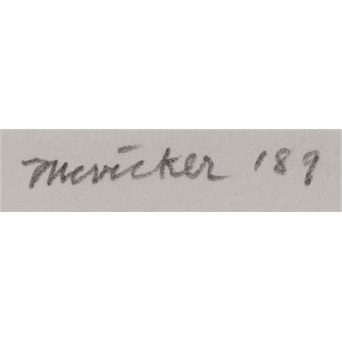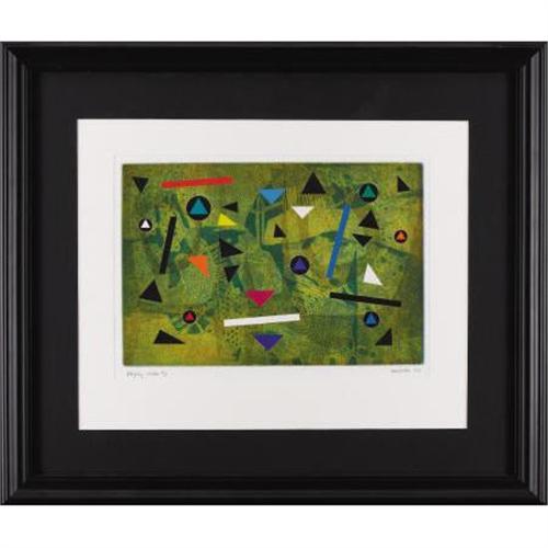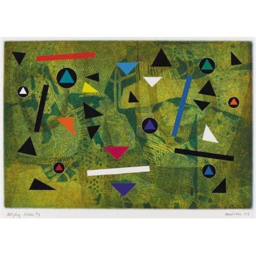 <B>J. J. MCVICKER (1911-2004)</B></I><BR><I>Beijing Series #3</B></I>, 1989<BR>Color aquatint on paper<BR>10 x 14-3/4 inches (25.4 x 37.5 cm)<BR>Signed and dated lower right<BR><BR> This color aquatint uses frottage technique to transfer textures, such as burlap, wire screen, honeycomb, and crumpled paper to the copper plate. The artist has then placed colored paper behind cutouts to achieve the final effect. A lively and accomplished print.<BR><BR>Provenance:<BR>Estate of J. J. McVicker<BR>Acquired from the above by the present owner<B>Condition Report:</B> Excellent condition. New frame in excellent condition.<BR><BR><b>Shipping:</b> Requires 3rd Party Shipping (<a target="_blank" href="http://www.heritageauctions.com/common/shipping.php">view shipping information</a>)