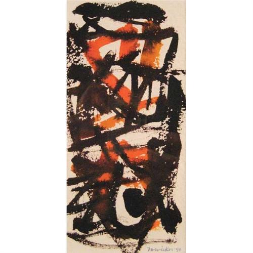 J.J. McVicker (1911-2004), Watercolor, Abstract, c. 1959, 7" x 3 1/2", Signed lower right '59.