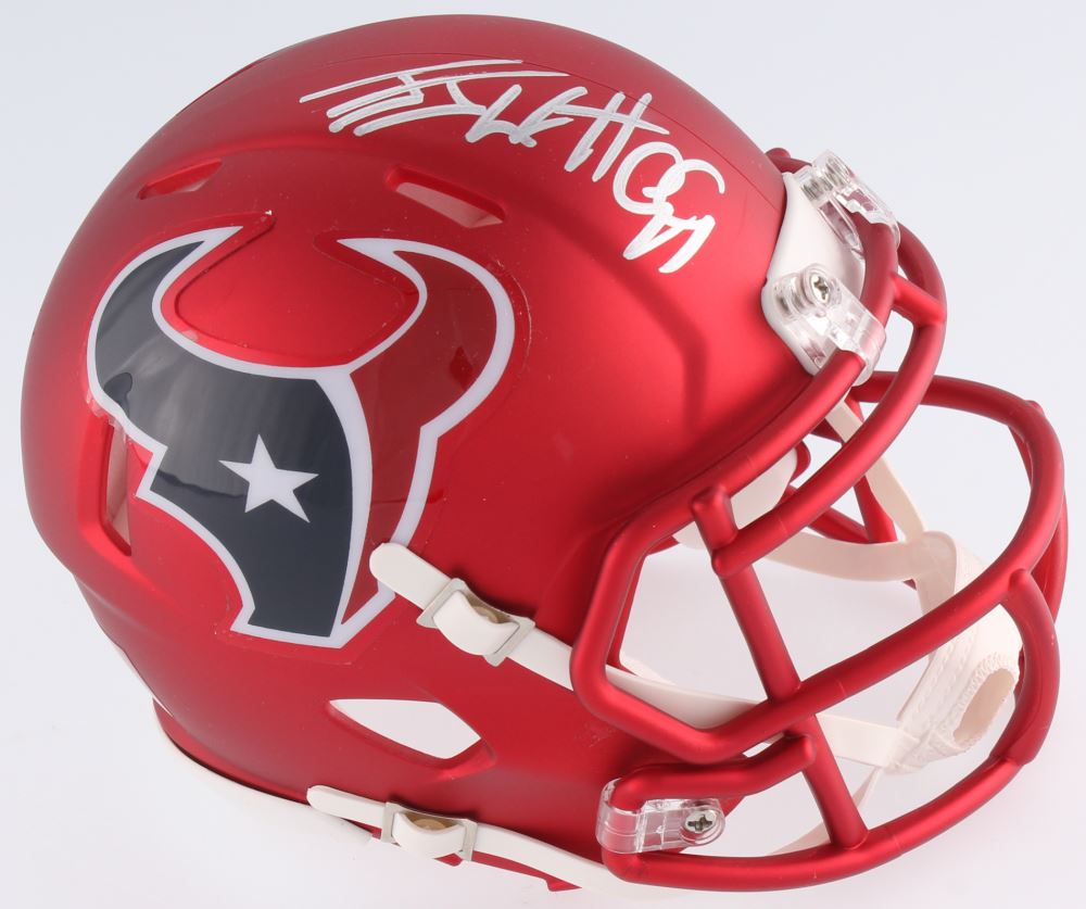 Riddell Houston Texans blaze speed mini-helmet. Hand-signed in silver paint pen by J.J. Watt.