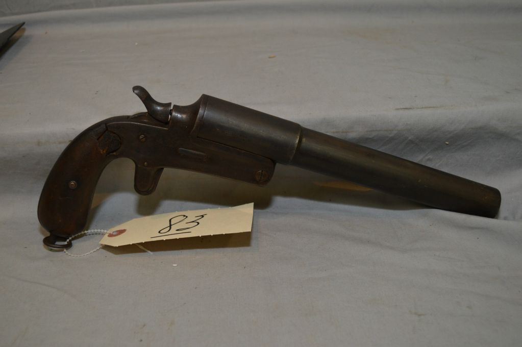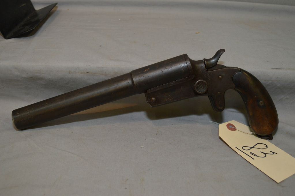 J.K. .4 Ga Flare Gun [ matted blue finish turned brown, spur style trigger, walnut grips , right one damaged, lanyard ring , approx 10" bbl, proof marked on right side of bbl ] Ser # 12667 NO PAL REQ