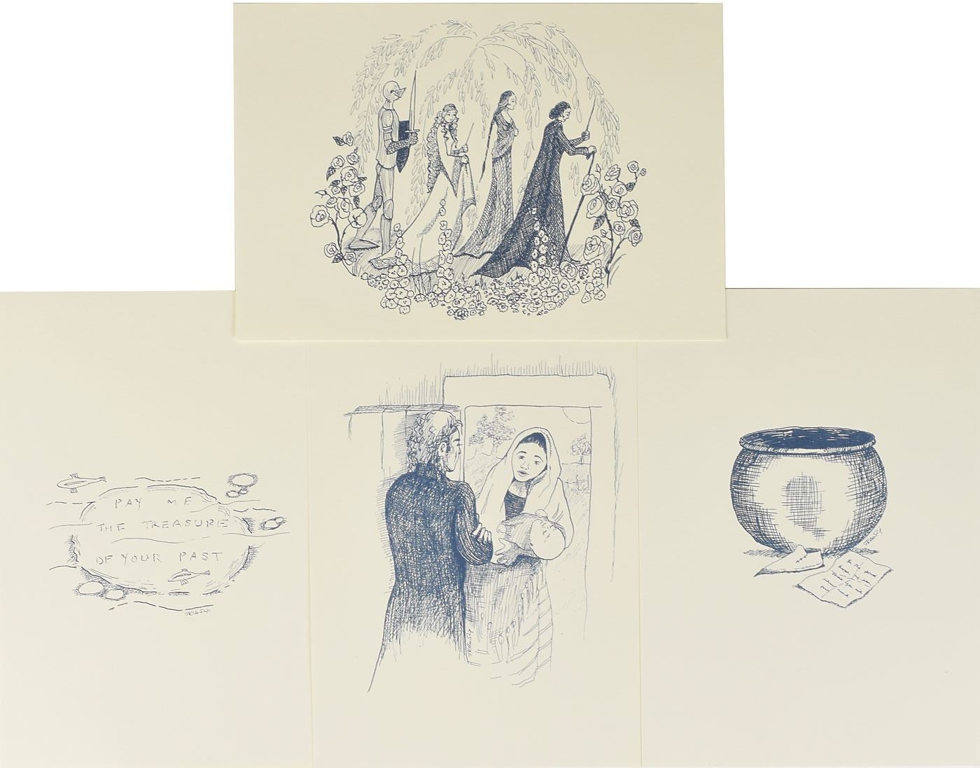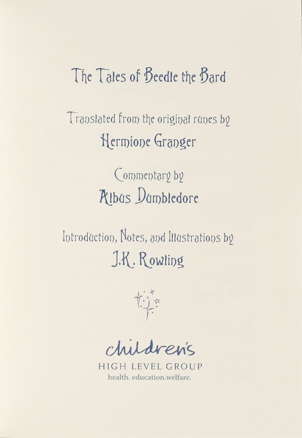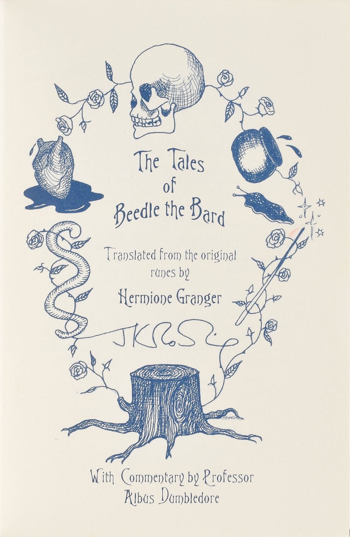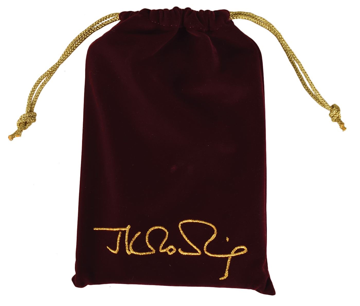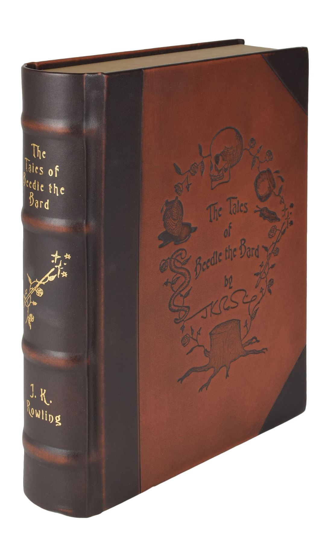 Signed book: The Tales of Beedle the Bard. Deluxe collector's edition. London: Children's High Level Group, 2008. Ornately embellished hardcover, 4.75 x 6.75, 179 pages. Signed on the half-title page in black felt tip, "J. K. Rowling, 4th December 2008." Complete with its beautiful embroidered velvet bag, illustration prints, large leatherbound clamshell case, and white outer sleeve. In fine condition, with minor scuffing to outer white sleeve and an authentication hologram affixed to the signed page. A scarce, luxurious publication not often seen in signed examples.