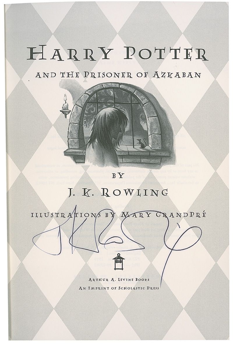Signed book: Harry Potter and the Prisoner of Azkaban. First American edition. NY: Arthur A. Levine, 1999. Hardcover with dustjacket, 6.25 x 9.25, 435 pages. Signed on the title page in black ballpoint. In fine condition.