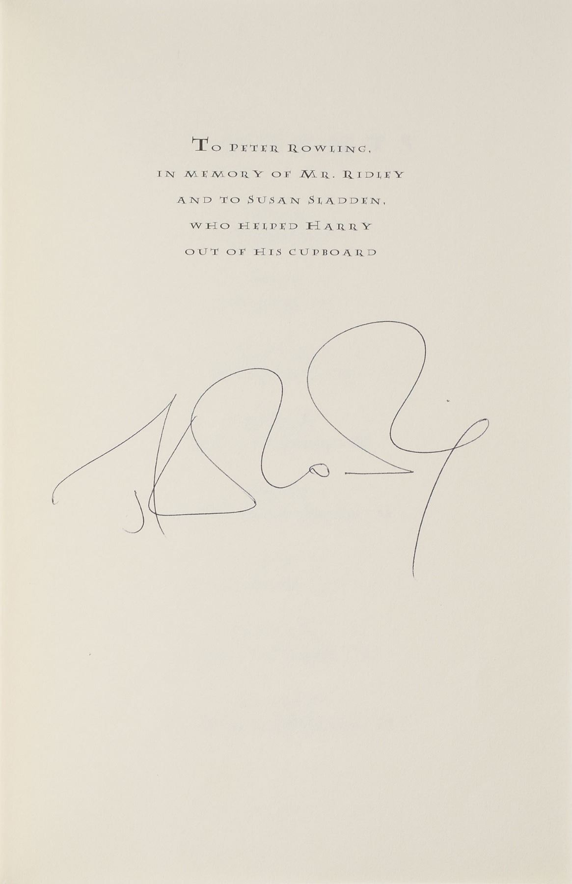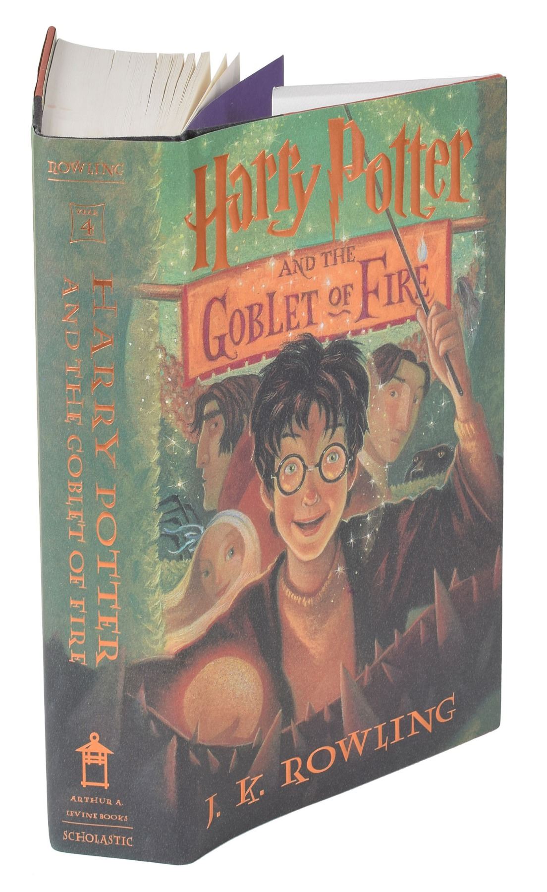 Signed book: Harry Potter and the Goblet of Fire. First American edition. NY: Arthur A. Levine Books, 2000. Hardcover with dust jacket, 6.25 x 9.25, 734 pages. Signed on the dedication page in black ballpoint. In very fine condition. Accompanied by a ticket stub to a Rowling book signing.