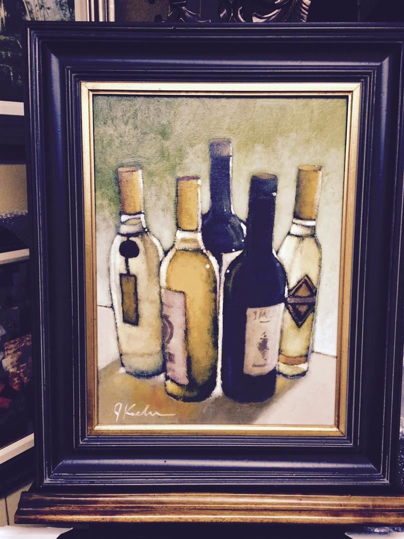 One J.Koehn "Private Reserve" wine, wine bar painting. Oil on canvas