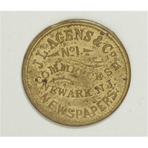 <B>Mint State J.L. Agens Civil War Merchant Token.</B></I> This uncertified, Uncirculated Civil War merchant token was issued by J.L. Agens & Co., Newark, NJ,<B> Fuld-NJ555A-5b, R.6.</B></I><BR><BR><b>Shipping:</b> Coins & Currency (<a target="_blank" href="http://www.heritageauctions.com/common/shipping.php">view shipping information</a>)