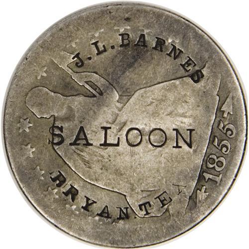 J.L. Barnes Saloon, Bryan, Texas, Counterstamped 1855-O