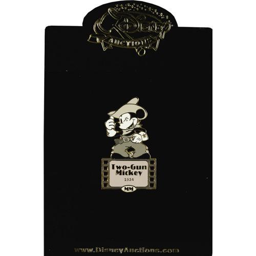 Two-Gun Mickey is the subject of this graphite and blue-pencil sketch, based on the 1934 black and white cartoon. The sketch is a design for an enameled pin, which is also included in the lot. The art has an image area of approximately 3" x 5.25", on a sheet of paper measuring 8.5" x 11". Both the art and the pin (which is in its original Disney Auctions packaging) are in Excellent condition. <BR><BR><b>Shipping:</b> Small Flat (<a target="_blank" href="http://www.heritageauctions.com/common/shipping.php">view shipping information</a>)