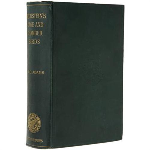 <B>J. M. Bechstein, M. D.: <I>Cage and Chamber-Birds: Their Natural History, Habits, Food, Diseases, Management, and Modes of Capture</B></I>.</B></I> (London: George Bell & Sons, 1900), 500 pages plus advertisements, green cloth with gilt lettering on the spine, 12mo (5" x 7.25"), no dust jacket. Profusely illustrated throughout with color bird plates. The book is in very good condition, though slightly shelf-cocked.<BR><BR><b>Shipping:</b> Books & Catalogs (<a target="_blank" href="http://www.heritageauctions.com/common/shipping.php">view shipping information</a>)