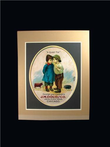 J.M. Doud Co. Union Chicago Stockyards Sign, entitled A Quiet Tip. Depicting a little boy and girl. Excellent condition. Framed and matted. 33 X 39 inches.