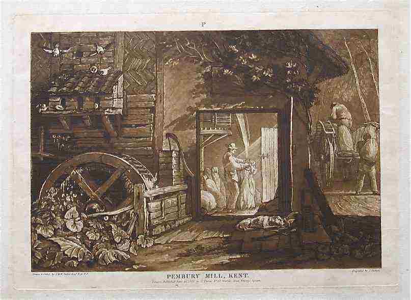 J. M. W. Turner "Pembury Mill, Kent" - Etching With Engraving And Mezzotint. Plate 12 Of The Liber Studiorum. Published In London By Charles Turner In 1808. Drawn And Etched By J. M. W. Turner And Engraved By Charles Turner. Size: 8 1/4 X 11 1/2 Inches (Plate) With Full Margins (210 X 290mm); - Professionally Framed & Matted - Comes With Certificate - -
