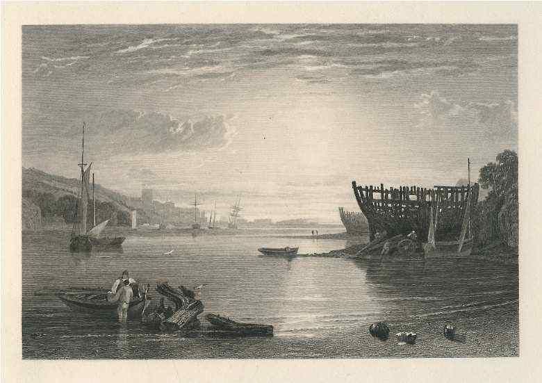 J. M. W. Turner "Teignmouth" Engraving . From The Rare Portfolio "Picturesque Views On The Southern Coast Of England", Published In Parts Between 1814-1826, By John And Arthur Arch, London. The Image Measures Approx 6 X9 Inches; This Is The Large Folio Size With Full, Untrimmed Margins- Professionally Framed & Matted - Comes With Certificate - -