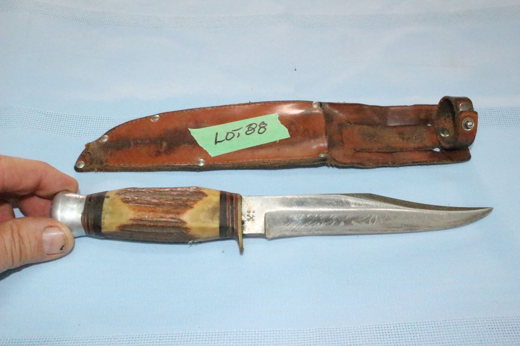 J. Nowill & Sons, England Knife w/6" Blade, Antler Handle and Sheath