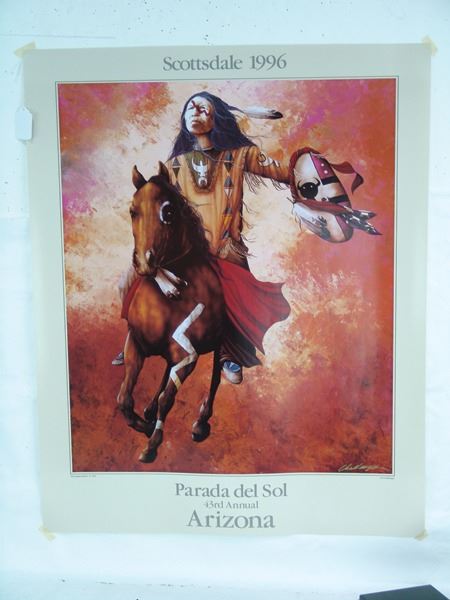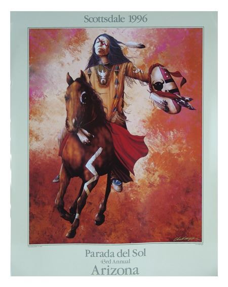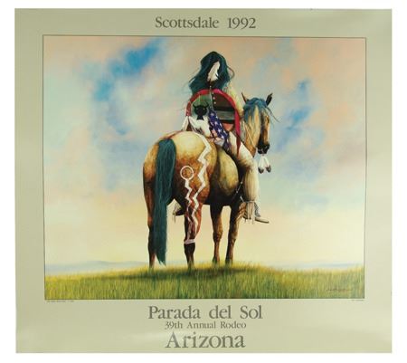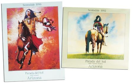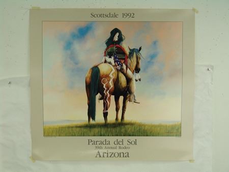 Ca. 1992 & 1996, Pair of high quality hand signed posters titled "Emerging Spirits" and "The Spirit Never Dies," made to commemorate the 39th and 43rd Panada Del Sol Foundation in Scottsdale, Arizona. Very good condition. Rolled and in tube. Larger 30" x 24