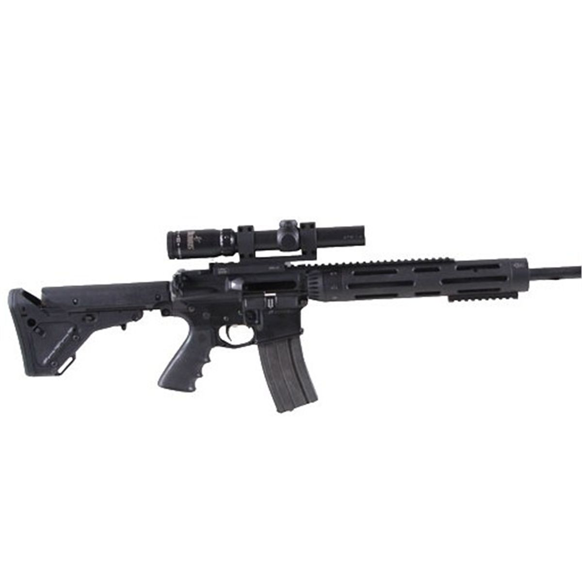J P Enterprises Mdl JP-15 Cal .223/5.56 SN:J00058, Semi-auto AR15 style competition/tactical rifle chambered for Rem .223. Matte black upper and lower, Magpul adjustable stock with rubber butt pad and Hogue pebbled pistol grip, 24" Super Match barrel wiSN:J00058, Semi-auto AR15 style competition/tactical rifle chambered for Rem .223. Matte black upper and lower, Magpul adjustable stock with rubber butt pad and Hogue pebbled pistol grip, 24" Super Matchbarrel with anodized aluminum ventilated hand grip, accessory rails mounted on top, bottom and left side of barrel. Burris Extreme Tactical XTR-14 scope mounted above the receiver on a LaRue Tactical mount. Good bore and action. Included in aluminum gun case and magazine speed loader. Condition: Near new with no sign of use. (3)20rd and (1)50rd magazines. 'NOT CALIFORNIA LEGAL"