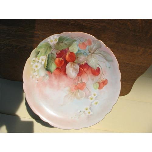 </font></strong>STUNNING HAND PAINTED J.P. LIMOGES CHARGER DECORATED WITH STRAWBERRIES ACCENTED BY DELICATE