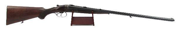 A fine J.P. Sauer & Sohn sporting cape gun. Features shotgun / rifle side by side combination barrels, measuring just over 27 inches, with break action and ejector. Each barrel marked "J.P.SAUER & SOHN, SUHL", and "FLUSS - STAHL / KRUPP - ESSEN" (fluid steel). Imperial German proof marks located on bottom of barrels, under forearm. Front bead tipped sight and hinged rear sight, on rib with claw mounts for a scope. Receiver is decoratively scroll engraved, and marked "J.P.SAUER & SOHN, SUHL", as well as DRGM (Deutsche Reich Gebrauchmuster) patent number 130243, dating to very early 20th Century. Stock has checkered forearm and wrist, with decorative metal grip cap, and raised cheek rest. Sling swivels mounted to barrel and stock. Bores are excellent, with a good clean shine to shotgun bore, and clear deep rifling to rifle bore. Bluing is about 80%, wit a very light spotting of surface rust. Dark mellow handling patina on receiver and stock. Stock is very good, with aged handling marks, but no cracks, chips, or repairs, and bakelite butt plate. Overall very good condition. SN: 12860/4 Caliber: cape gun Serial #: 12860/4