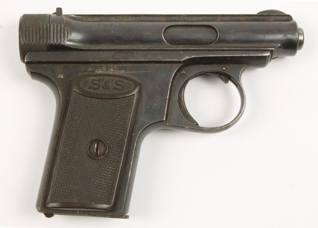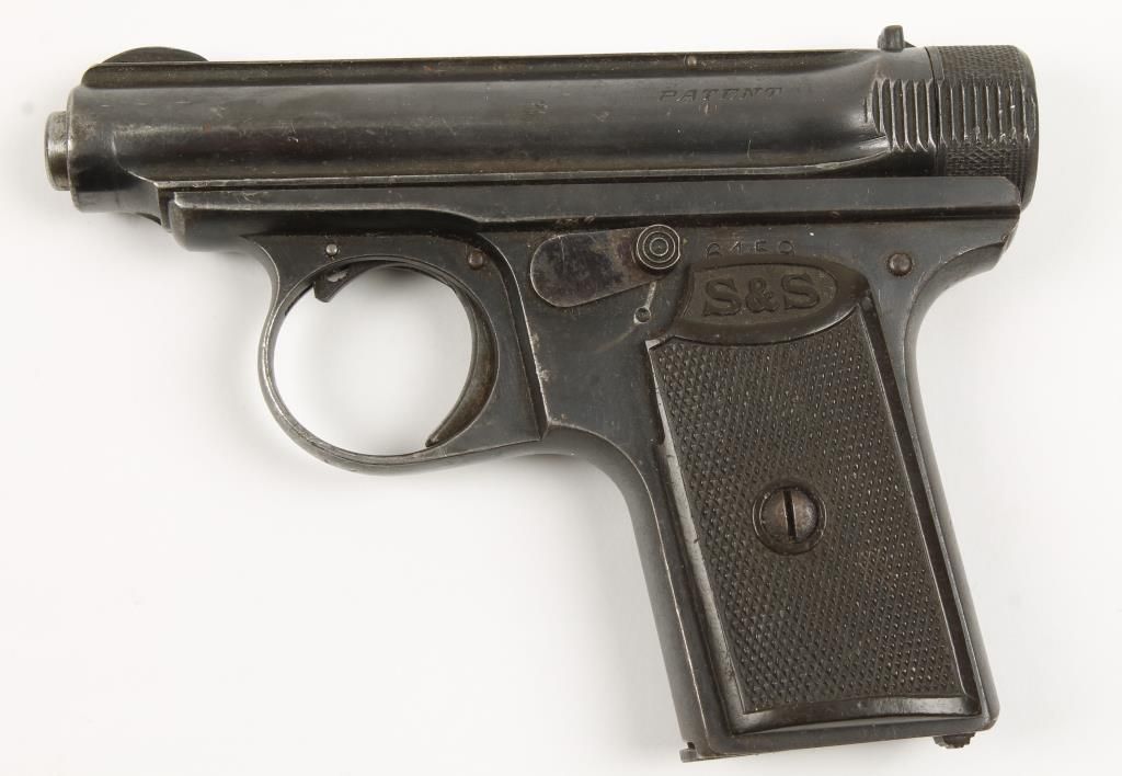 German single action hammerless semi-automatic pistol with (1) magazine. The finish is uniformly good with some edge wear and some tiny rust spots. The grips are in good condition. The bore is in poor pitted condition. Overall condition is fair to good. *MUST BE REGISTERED*