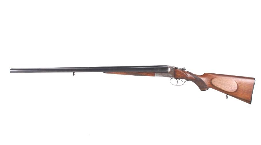 Featured in this lot we have a J. P. Sauer & Sohn model 60 break action side by side shotgun chambered in 12 gauge. The shotgun features a 28 1/2" long round side by side barrels. walnut stock, trigger guard, and blue'd finish. The left side of the barrel is marked "J. P. Sauer & Sohn A. G. Eckeirnfords Spezial Laufstall Bochumer Verein Made in Germany" and "Spezial Laufstall Bochumer Verein" on the right side of the barrels. The frame displays stamped and etched geometric and floral designs with the sides marked "J. P. Sauer & Sohn" and the bottom of the frame is marked "Original Sauer". This shotgun mechanically shows good condition and working double trigger system. The shotgun shows good condition overall with light wear due to age and handling. Serial Number: 11441. This firearm qualifies as a Curio & Relic firearm, and requires FFL Transfer or NICS Background Check.