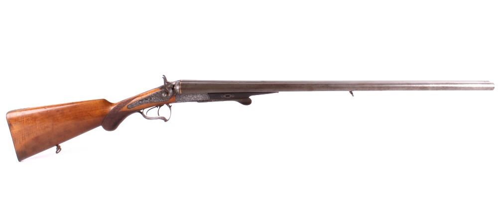 Included in this lot is a stunning engraved J.P. Sauer & Sohns finely engraved and gilded 12 gauge side by side shotgun. J.P. Sauer & Sohn is the oldest recorded gun maker in Germany. The first Sauer company was founded in 1751 by Lorenz Sauer in Suhl, Thuringia, Germany. The shotgun utilizes a 30 5/16” side by side Damascus barrel chambered in 12 gauge. The top of the barrel is inlaid with gilded lettering reading “J.P. Sauer U. Sohn Suhl”. Additional gold inlay is around the barrels where the receiver meets the barrel. The receiver is lavishly decorated and highly engraved. The left side shows two foxes with a woodland background in a relief style engraving while the right has a buck running through the woods. The underside of the trigger guard shows a doe bedded down. The silver pistol grip cap also shows a shield engraving. The break action lever is made of either tortoise shell or horn. The right side of the straight grain walnut stock features a cheek riser. The pistol grip and foregrip showcase a nice diamond checkering. The shotgun is in very good condition overall for its age. Minor chip damage to the fore grip and the lever. Serial Number: 22691. This firearm qualifies as a Curio & Relic, and requires FFL Transfer or NICS Background Check.