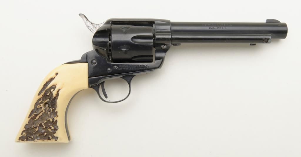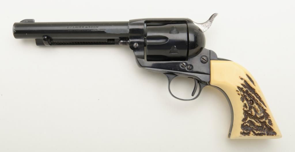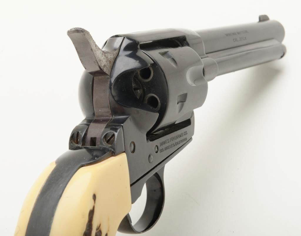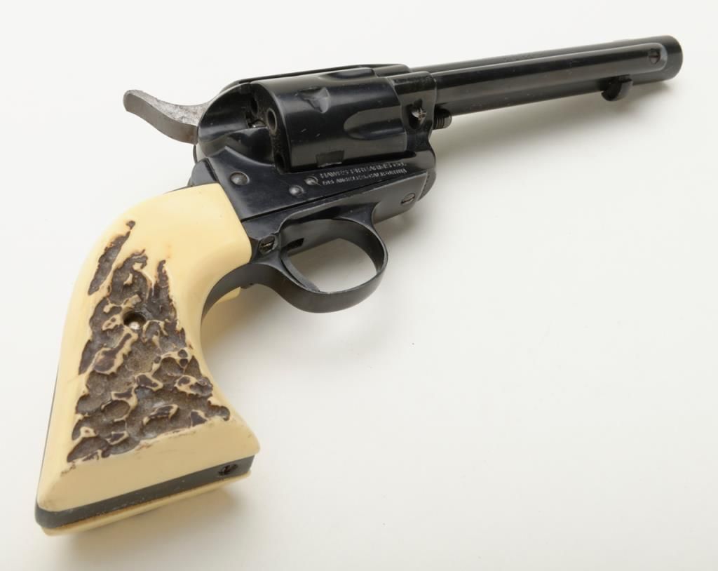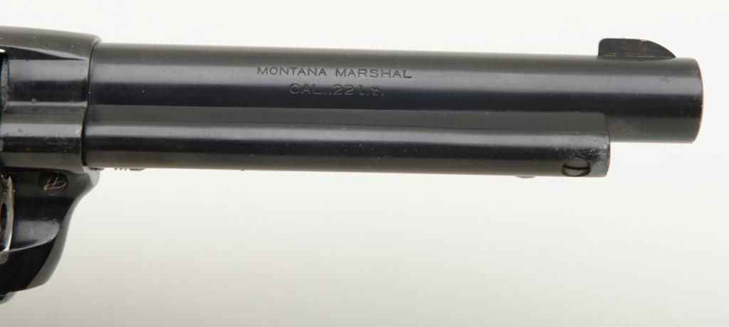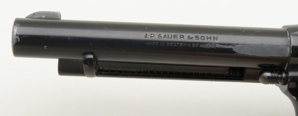 J.P. Sauer and Son single action, .22 caliber Western-style revolver marked Montana Marshall imported by Hawes Firearms Company Los Angeles 1950s to 70s. The condition is very good and shows some use. Serial number 4370312. Est.: $100-$200