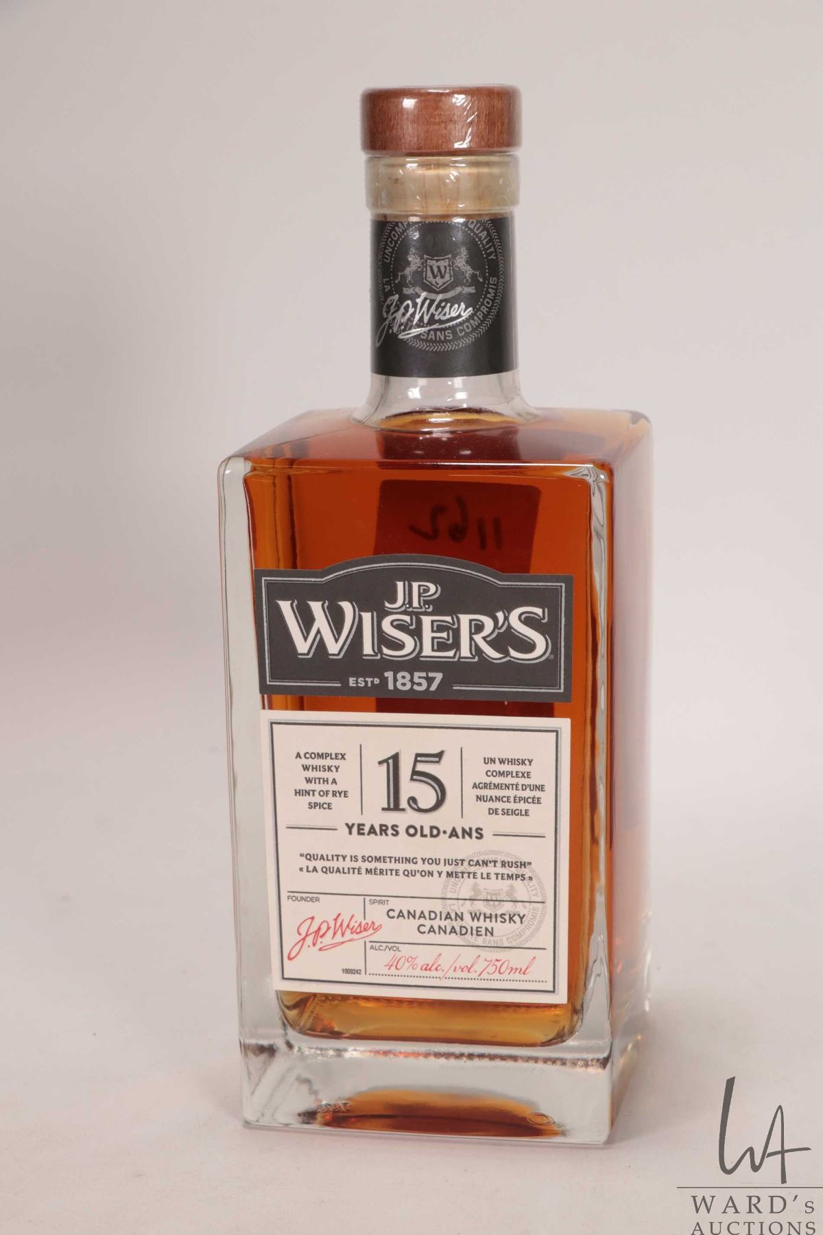 J.P. Wiser's/ 15 Year-Old/ Canadian Whisky/ 750ml/ 40% ABV Note: Alcohol cannot be insured by any courier in Canada. Local pick up is recommended. Canadian bidders only.