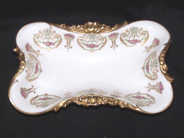 J. POUYAT Limoges Relish Dish. Unique shape and good coloring. Approx 9" x 5". Good condition.