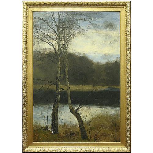 J. Parton oil on canvas; landscape with stream; Kentshire Galleries label on reverse; signed (L.R.); framed; early 20th C.; image size 40" x 26"; some paint loss in lower left area