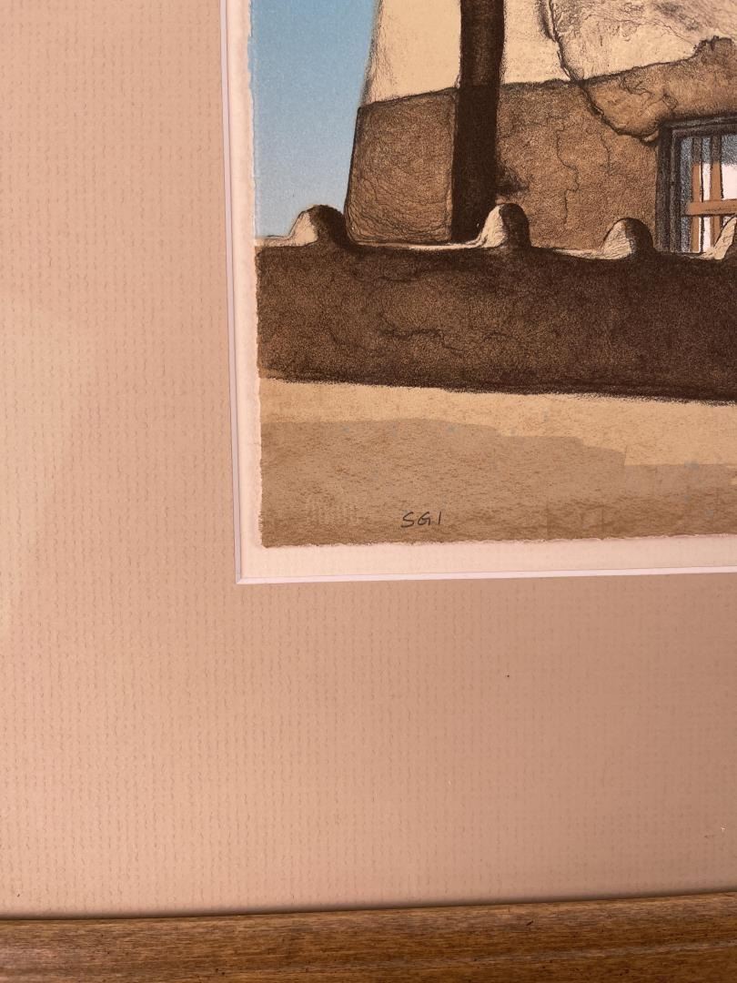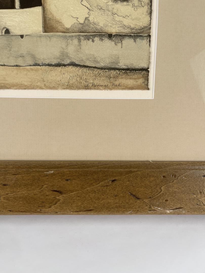 Signed. 24" by 28 1/2" framed. J. Purmal Piek (20th century) was active/lived in Arizona. J Piek is known for Lithographer. Biography: PIEK J. Purmal Piek did her undergraduate and graduate studies in the field of Fine Art and became the third woman in the United States to become a Tamarind Master Printer from Tamarind Institute, University of New Mexico. After moving to New Mexico, Ms Piek started acquainting herself with the countryside by sketching, painting, and photographing. Gradually she came to know and appreciate the Indians of the region through their arts and crafts and especially in their religious ceremonies. Because of her interest in the art of hand lithography, she decided to translate her images of the Southwest into this medium. Her lithographs reflect the clarity of light and brilliant skies in contrast to the forceful substance of the earth and architecture of the pueblo country. Permal co-founded Southwest Graphics Workshop in Scottsdale, Arizona, the first private lithographic workshop in the state of Arizona.