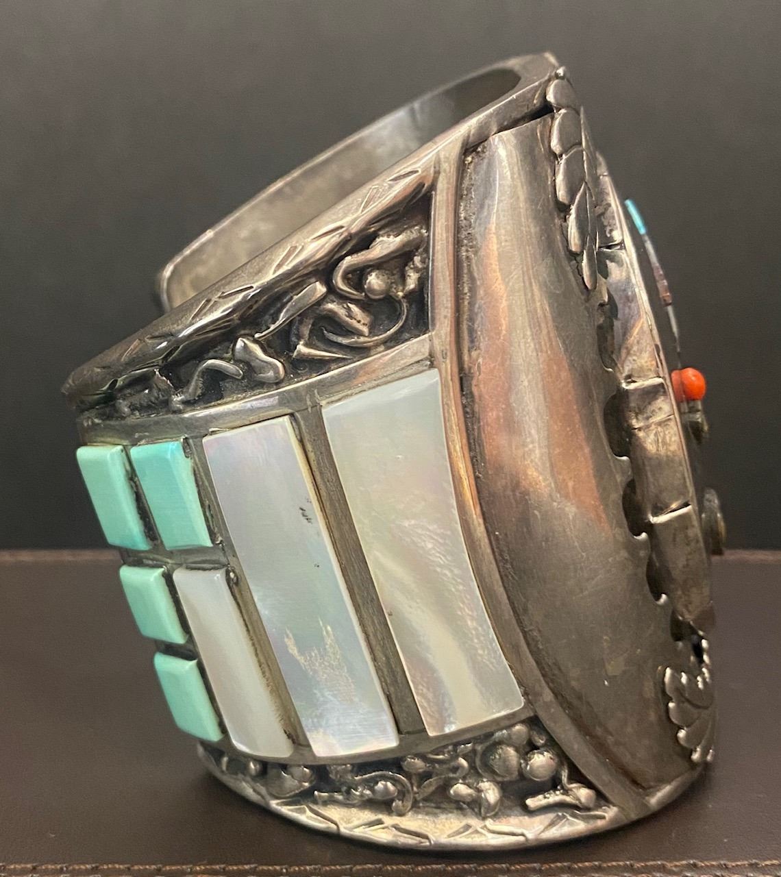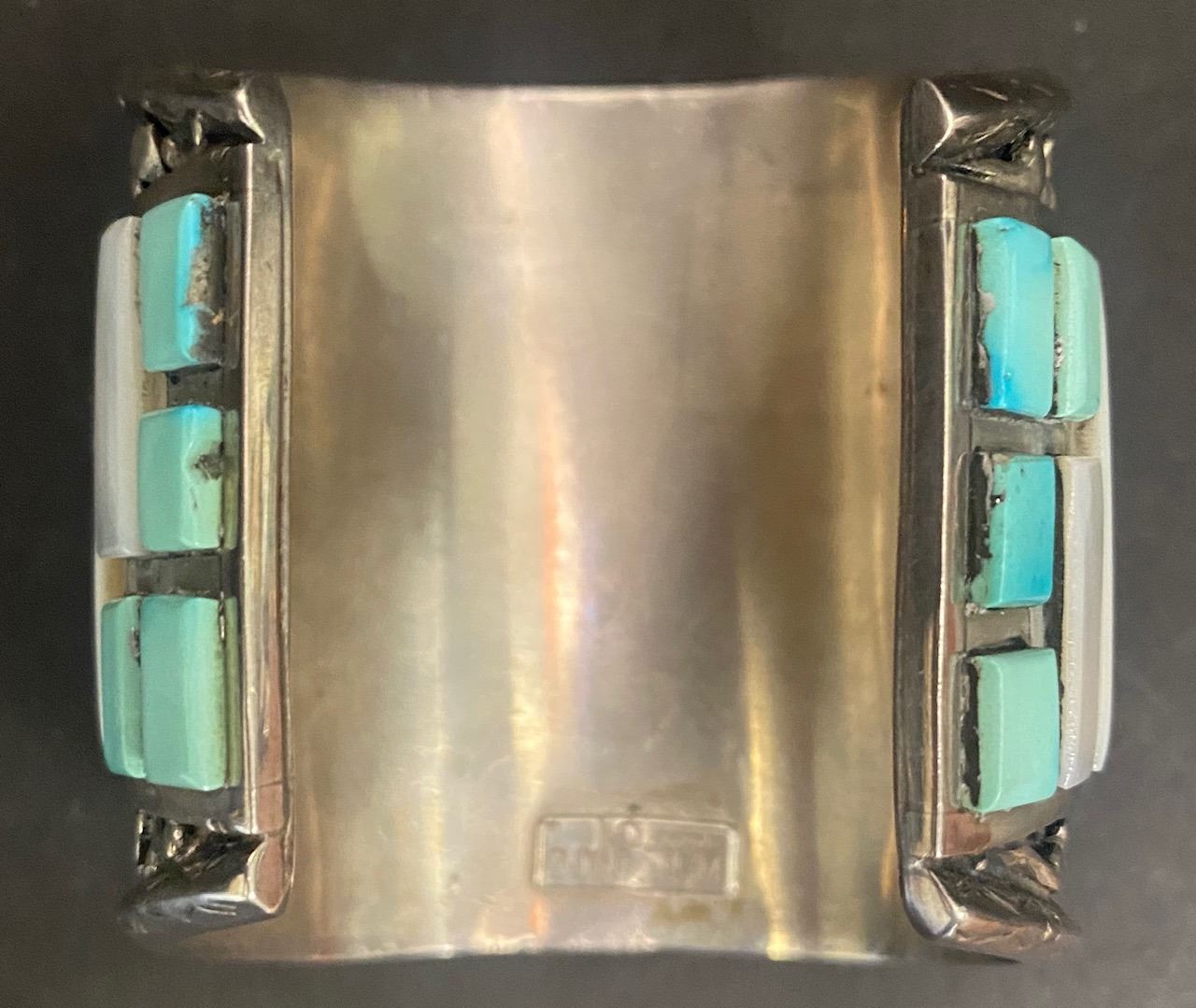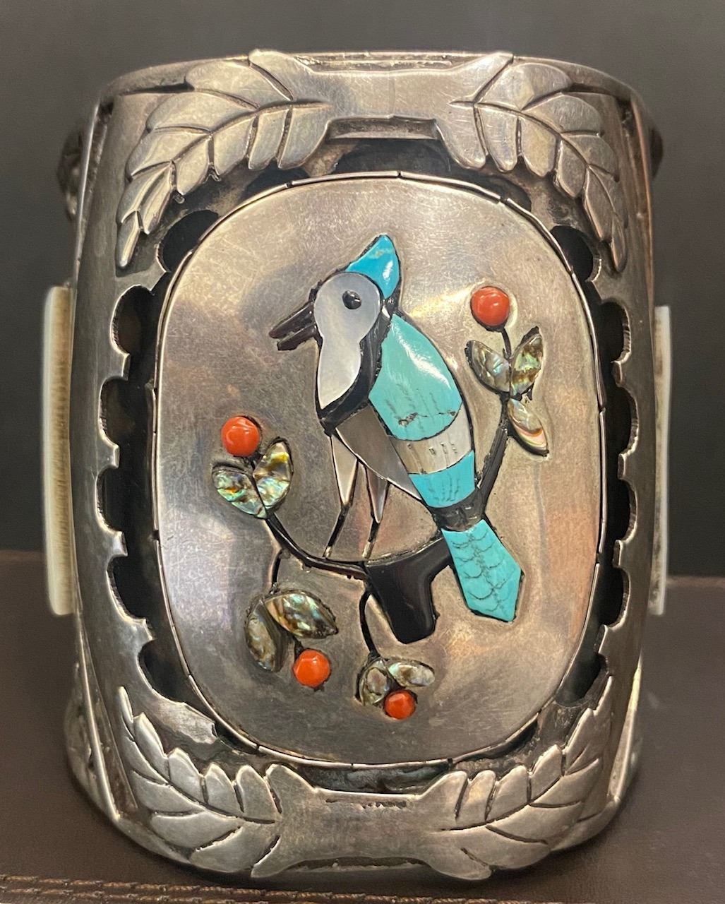 J. Quan, Zuni 1960's Blue Jay Large Cuff. 3 3/8"H X 5 3/4" inside X 1 1/2" opening 275 grams
