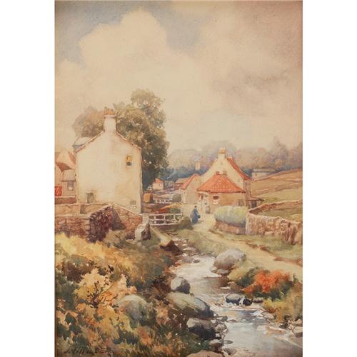 J.R.Miller a pair of watercolors, Village scene