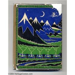 <B>J.R.R. Tolkien - The Hobbit, First Edition, First Impression, 1937, London: George Allen & Unwin, Ltd.</B></I> 8vo, green decorated cloth binding, map endpapers, illustrations by the author, 301 pages. Condition: Good to Very Good with some light soiling to the covers and slight foxing to the edges. Dust Jacket: Good with some chipping and light staining overall. There is a missing piece measuring approximately 2.5" x 1.25" from the upper spine and a small piece out of the lower front right corner measuring approximately .75" x .75". Other nicks, tears and small pieces missing from the rest of the jacket, but overall this is a very nice and presentable copy, with strong eye appeal. The word "Dodgeson" has been hand-corrected, with an inkmark through the "e", and the front flap, which is unclipped, bears the correct price of "7s. 6d. NET". Taken together, these indicate that a first impression dustjacket accompanies this rare first edition book.Tolkien wrote the first line of <B>The Hobbit</B></I>, "In a hole in the ground there lived a Hobbit," on a blank sheet while correcting exam papers in school. After several years of development (in which Tolkien would tell parts of the story to his children), the book was submitted to publisher Allen & Unwin, Ltd in 1936. Chairman Stanley Unwin greenlighted the project on the advice of his ten-year-old son, Rayner, who wrote, "It is good and should appeal to all children between the ages of five and nine." Released on September 21, 1937 in a limited edition of 1,500 copies, the book sold out completely in a mere three months and has been in print ever since. Of particular interest to collectors are the differences between the first edition of this work and subsequent editions. A compulsive rewriter, Tolkien was rarely satisfied with his work, and often went back and revised passages. One of the more well-known examples of the "niggling", as Tolkien called it, is in the Riddle Game played between Bilbo and Gollum, which is markedly different in the first edition. As Tolkien worked on <B>The Lord of The Rings</B></I>, he found it necessary to make certain alterations in his earlier work, to bring the Hobbit more clearly in line with his later, more mature, vision. Therefore, Gollum becomes a decidedly more evil creature in later versions, and the stakes of the Riddle Game are different (in the familiar version, Gollum offers to lead Bilbo to safety if the Hobbit wins the game; in the first version, Bilbo is offered "a present" should he prevail). In July, 2002, a first edition copy of The Hobbit, signed by Tolkien to his aunt, sold for approximately $66,000 at a Sotheby's auction, and prices nearly double that for particularly pristine copies are not unheard of. With the renewed popularity of this franchise via Peter Jackson's blockbuster epic, prices seem to be steadily increasing, as fans discover, or rediscover, the works of this modern master <BR><BR><B>Important notice:</B> Heritage usually auctions material at the rate of 200-250 lots per hour. On some occasions eBay Live bid software or the Internet may not be able to keep up with the pace of the auction. We recommend placing a realistic absentee bid now as insurance to avoid disappointment. Occasionally the auctioneer may eliminate or reject an eBay Live bid, and the auctioneer may also reopen a lot after the close of the eBay live bidding (usually because we missed an audience bid), and may reject your bid even if it shows you as the winning bidder. By bidding via eBay Live, you agree that Heritage may award the lot to another bidder at its sole discretion under the circumstances described above or any other reasonable circumstances. Since eBay bids are not shown to us until we open the lot on the floor, we treat those bids just like floor bids. In most cases the floor responds before the eBay bid is presented to us, due to Internet lag time, so for consistency we have made it a policy that floor bids are always considered first over tie eBay live bids. Also please note that all Heritage lots purchased through eBay Live carry a 20% Buyer's Premium. Please make sure you read the Terms and Conditions before you bid.