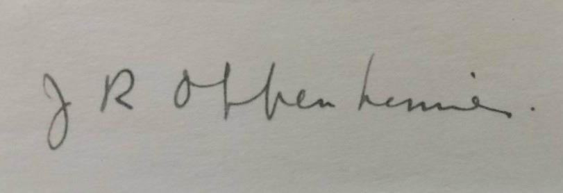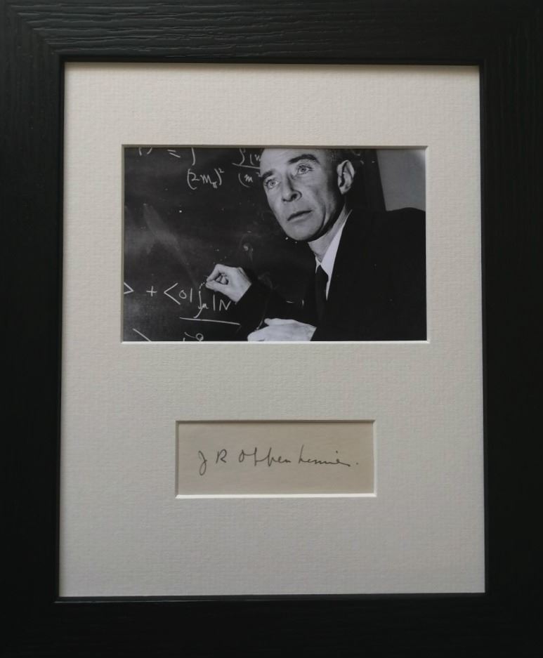 J. Robert Oppenheimer's autograph is mounted, framed in wood, and supplied with coa.